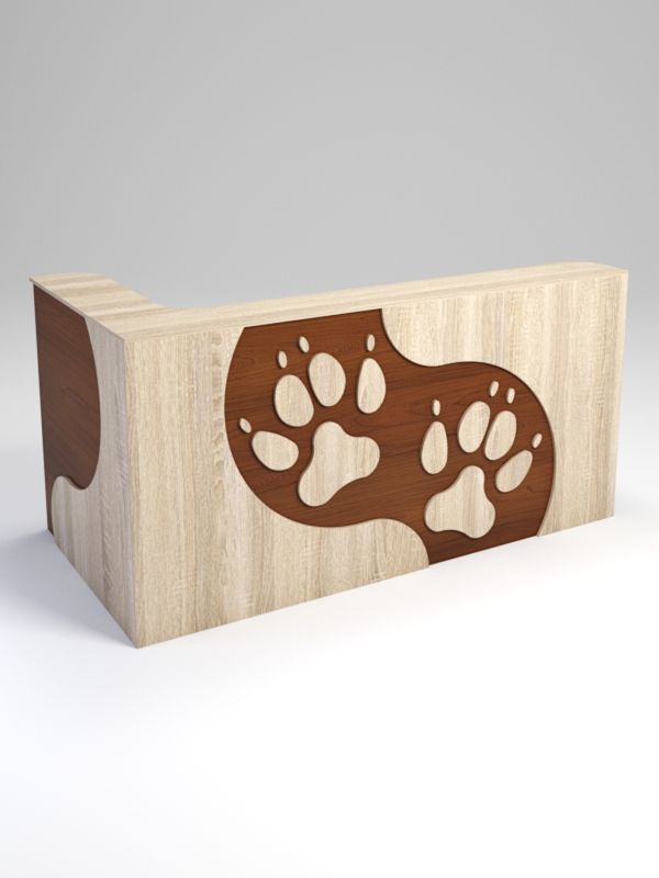 Невысокая стойка администратора, украшенная отпечатком лапы собаки, с первых минут пребывания в компании покажет вашим посетителям то, что забота о животных — главный приоритет вашей организации.