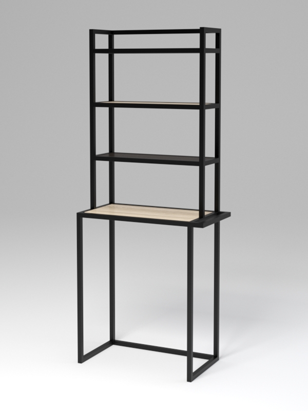 Стеллаж под стиральную машину. Ванные и туалетные комнаты, как правило, имеют не очень много свободного пространства. И именно такую проблему решает данное изделие. Стеллаж в стиле лофт способен предоставить много места для хранения туалетных принадлежностей, косметических и гигиенических средств, а также украшает собой интерьер. Полка состоит из трех ярусов. По боковым частям имеются стильные декоративные элементы п-образной формы.