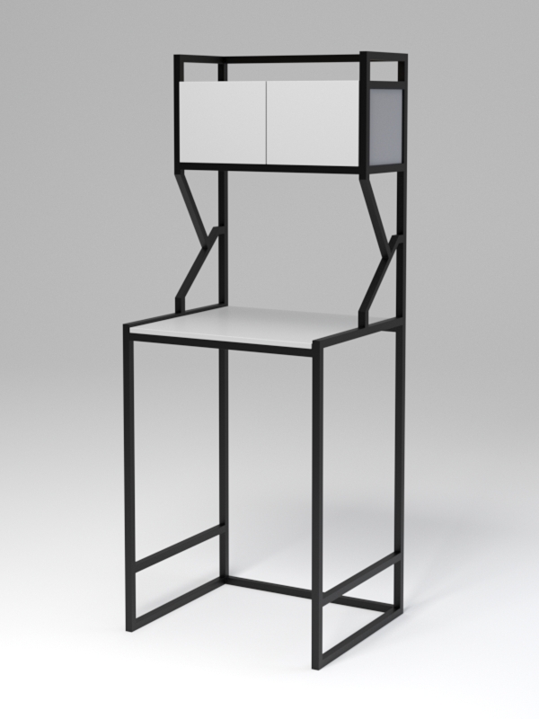 Стеллаж под стиральную машину в стиле лофт. Ванные и туалетные комнаты, как правило, имеют не очень много свободного пространства. И именно такую проблему решает данное изделие. Стеллаж предоставляет место для хранения, а также украшает собой интерьер. Стеллаж сверху имеет небольшой ящик закрытого типа, где удобно хранить туалетные принадлежности и гигиенических средства. Конструкция предусматривает столешницу. По боковым частям имеются стильные декоративные элементы п-образной формы.