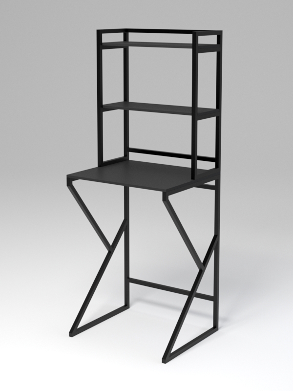 Стеллаж под стиральную машину в стиле лофт. Ванные и туалетные комнаты, как правило, имеют не очень много свободного пространства. И именно такую проблему решает данное изделие. Стеллаж предоставляет место для хранения, а также украшает собой интерьер. Стеллаж оснащен двумя полками и столешницей, где удобно хранить туалетные принадлежности и гигиенические средства.