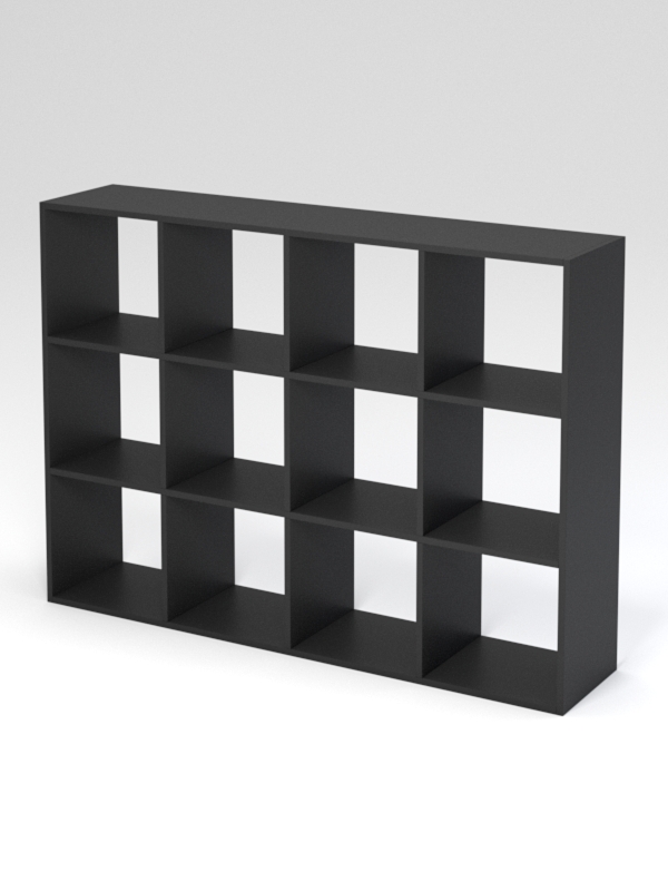 Стеллаж с двенадцатью секциями. Отлично вписывается как в интерьер квартиры или офиса. Можно использовать как вертикально, так и горизонтально. Можно использовать в таких помещения как — гостиная, кабинет, офис, прихожая, спальня и квартира. Имеет легкий классический дизайн и подходит под любой интерьер. Подойдет для хранения различных вещей.