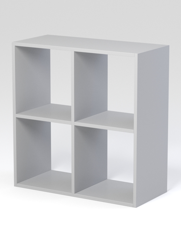 Стеллаж с четырьмя секциями. По форме напоминает квадрат. Отлично вписывается в интерьер квартиры, офиса, общественного пространства и магазинов. Впишется в любой интерьер. Легкая и надежная. Подойдет для хранения и демонстрации различных предметов или элементов декора.