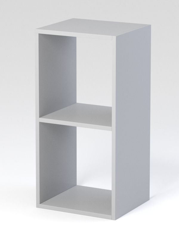 Стеллаж с двумя секциями. По форме напоминает прямоугольник. Отлично вписывается в интерьер квартиры, офиса и общественного пространства. Можно использовать как в вертикальном, так и горизонтальном положении. Подходит под любой интерьер и окружающую мебель. Легкая и надежная. Подойдет для хранения и демонстрации различных предметов или элементов декора.