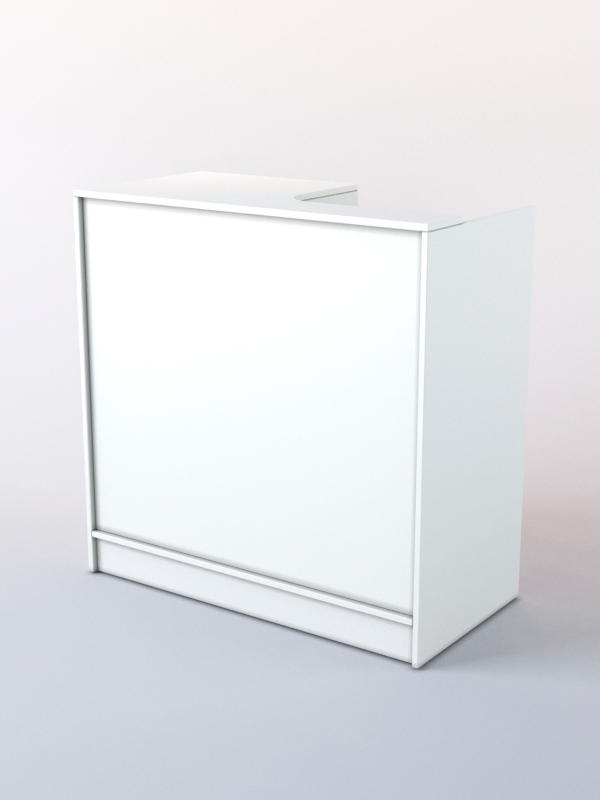 Кассовый прилавок для магазинов и торговых точек. Со стороны продавца имеется полка, где можно хранить вещи для работы. Полок установлено четыре полки. Помимо этого имеется полка, которая закрывается на замок. Отличается эстетичным внешним видом — изделие без труда вписываются в любой интерьер.
