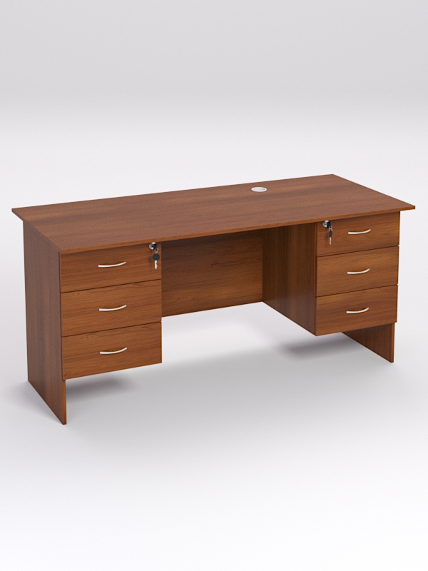 Стол двухтумбовый состоит из 3х элементов: стола и 2х тумб. Тумбы расположены симметрично по краям столешницы. Количество ящиков — 3шт. Инструкция по сборке не требуется.