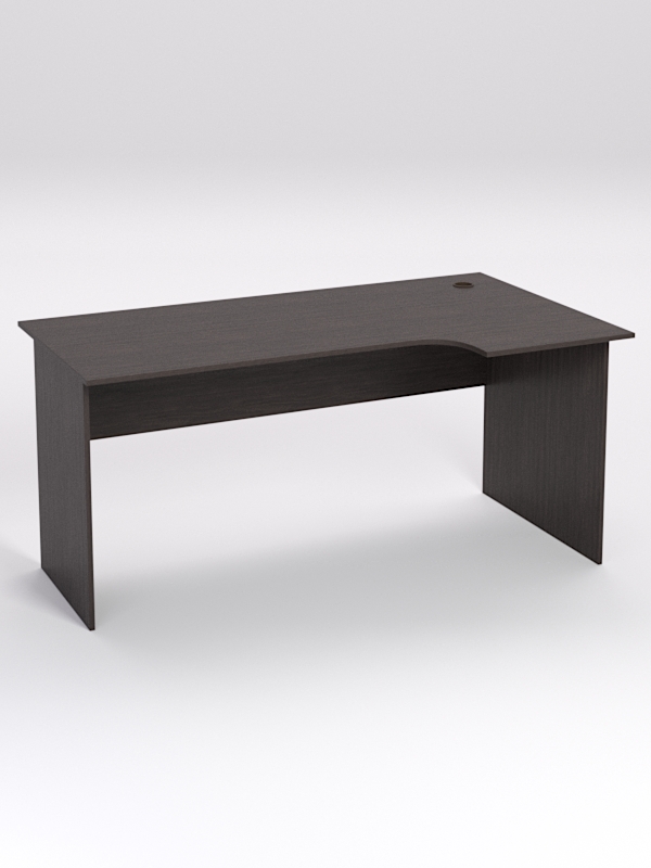 Стол состоит из 4х деталей, которые скрепляются между собой конфирматами и мебельными уголками. Столешница имеет фигурный вырез со стороны работника. Инструкция по сборке не требуется.
