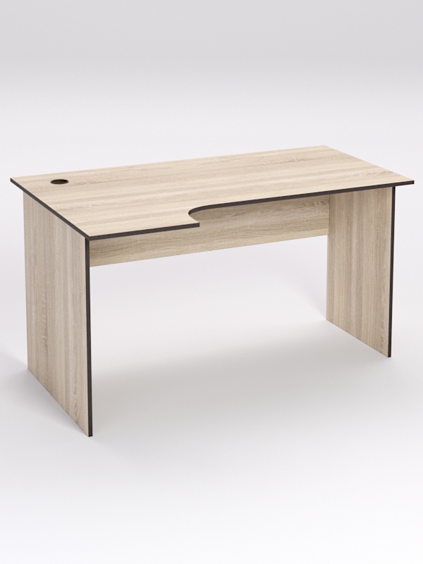 Стол состоит из 4х деталей, которые скрепляются между собой конфирматами и мебельными уголками. Столешница имеет фигурный вырез со стороны работника. Инструкция по сборке не требуется.