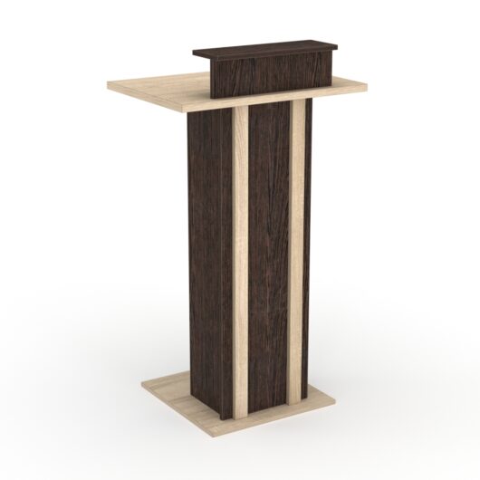 Трибуна для выступлений. Модель отличается своим стилем и удобством. Под столешницей имеется полка. Материал — лдсп. Цвет представлен в нескольких вариантах, а также в палитре на заказ.