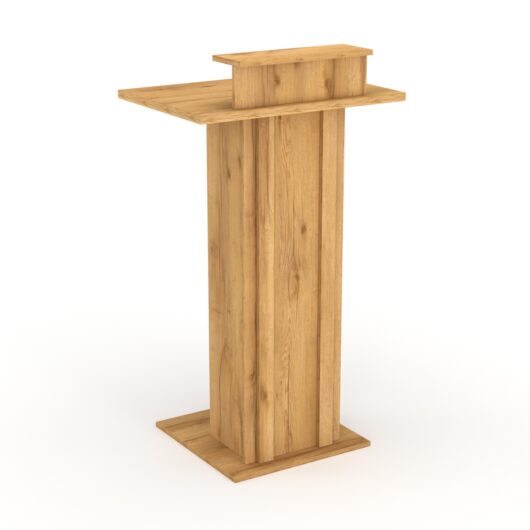 Трибуна для выступлений. Модель отличается своим стилем и удобством. Под столешницей имеется полка. Материал — лдсп. Цвет представлен в нескольких вариантах, а также в палитре на заказ.