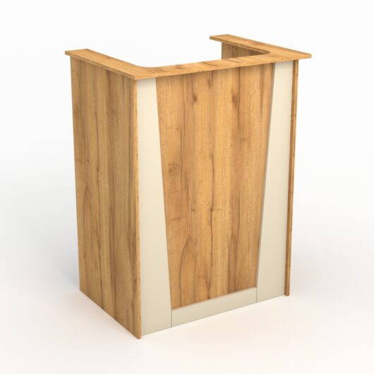 Закрытая трибуна со строгими прямоугольными формами. Отличный вариант для выступлений перед аудиторией. Внутри установлены две полки. Фронтальная часть подходит для нанесения герба или логотипа.