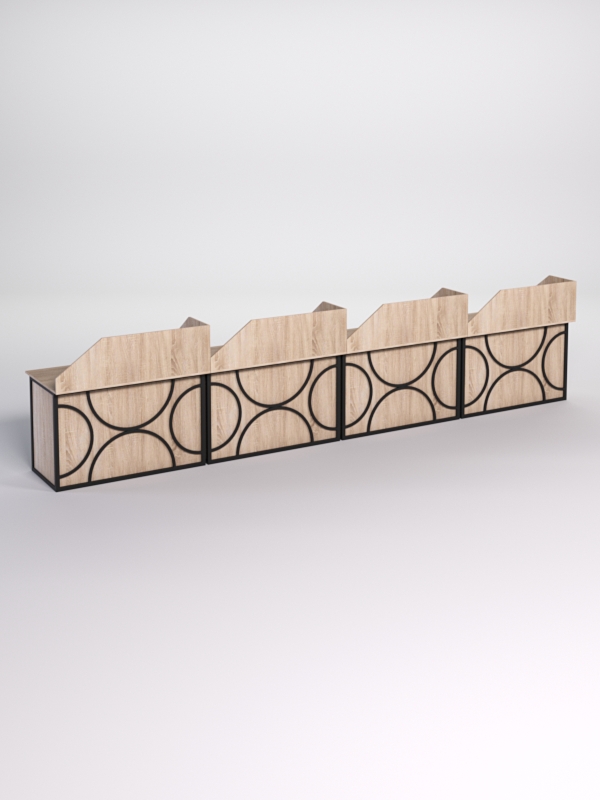 Мебель выполнена в стиле лофт с оригинальными элементами украшения, по внешнему виду напоминающим круги. Стиль лофт подходит для различных стилей интерьера и может быть использована как в коммерческих, так и в жилых помещениях.