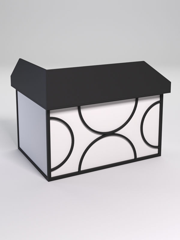 Мебель выполнена в стиле лофт. Фронтальная часть оснащена металлическими декоративными конструкциями, с оригинальным дизайном, который напоминает четыре круга. Стиль лофт подходит для различных стилей интерьера и может быть использована как в коммерческих, так и в жилых помещениях. Столешница стола также имеет необычную волнообразную форму. У данной конструкции расположена царга до пола.