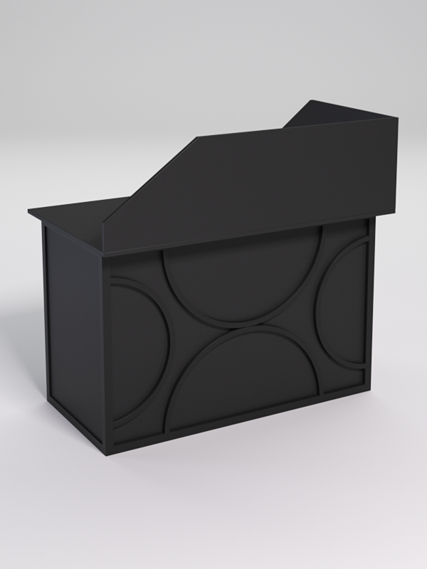 Мебель выполнена в стиле лофт. Фронтальная часть оснащена металлическими декоративными конструкциями, которые составляют оригинальный узор, по внешнему виду напоминающим четыре круга. Стиль лофт подходит для различных стилей интерьера и может быть использована как в коммерческих, так и в жилых помещениях.