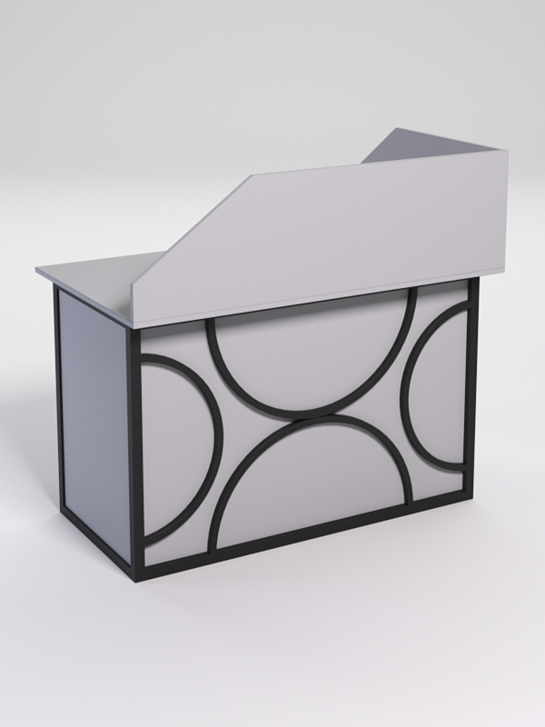 Мебель выполнена в стиле лофт. Фронтальная часть оснащена металлическими декоративными конструкциями, которые составляют оригинальный узор, по внешнему виду напоминающим четыре круга. Стиль лофт подходит для различных стилей интерьера и может быть использована как в коммерческих, так и в жилых помещениях.