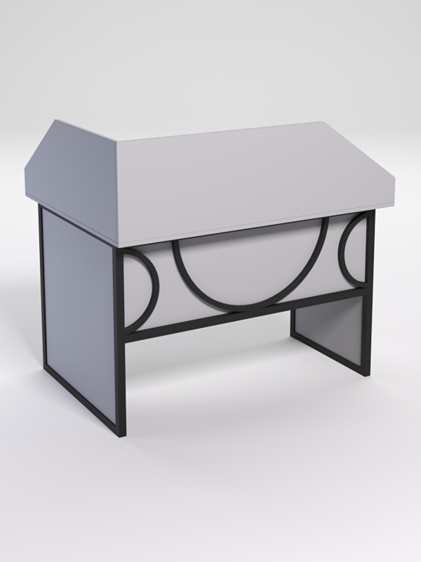 Мебель выполнена в стиле лофт. Фронтальная часть оснащена металлическими декоративными конструкциями, которые составляют оригинальный узор, напоминающий два квадрата и два треугольника. Стиль лофт подходит для различных стилей интерьера и может быть использована как в коммерческих, так и в жилых помещениях.