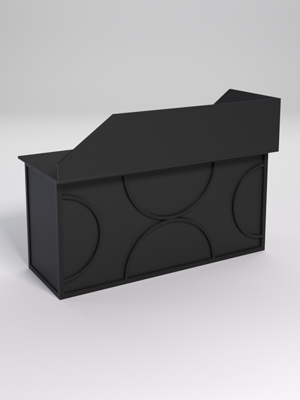 Мебель выполнена в стиле лофт. Фронтальная часть оснащена металлическими декоративными конструкциями, которые составляют оригинальный узор, по внещнему виду напоминающий три круга. Стиль лофт подходит для различных стилей интерьера и может быть использована как в коммерческих, так и в жилых помещениях.