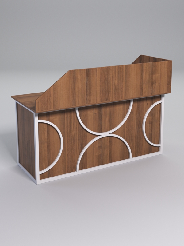 Мебель выполнена в стиле лофт. Фронтальная часть оснащена металлическими декоративными конструкциями, которые составляют оригинальный узор, по внещнему виду напоминающий три круга. Стиль лофт подходит для различных стилей интерьера и может быть использована как в коммерческих, так и в жилых помещениях.