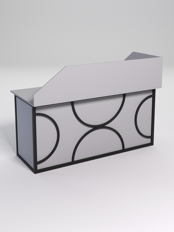 Мебель выполнена в стиле лофт. Фронтальная часть оснащена металлическими декоративными конструкциями, которые составляют оригинальный узор, по внещнему виду напоминающий три круга. Стиль лофт подходит для различных стилей интерьера и может быть использована как в коммерческих, так и в жилых помещениях.