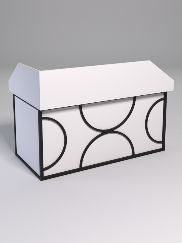 Мебель выполнена в стиле лофт. Фронтальная часть оснащена металлическими декоративными конструкциями, которые составляют оригинальный узор, который по внещнему виду напоминает четыре круга. Стиль лофт подходит для различных стилей интерьера и может быть использована как в коммерческих, так и в жилых помещениях.