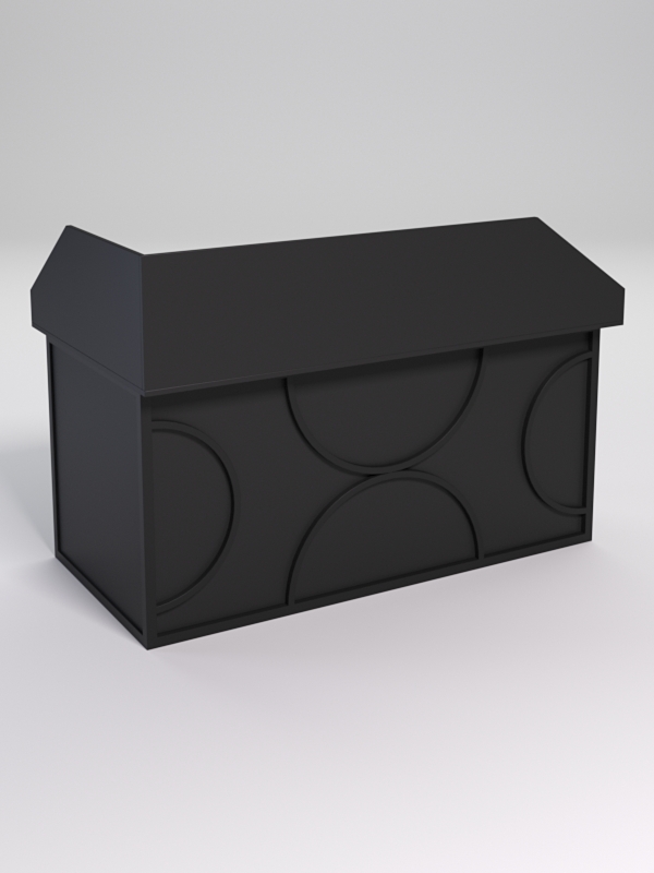 Мебель выполнена в стиле лофт. Фронтальная часть оснащена металлическими декоративными конструкциями, которые составляют оригинальный узор, который по внещнему виду напоминает четыре круга. Стиль лофт подходит для различных стилей интерьера и может быть использована как в коммерческих, так и в жилых помещениях.