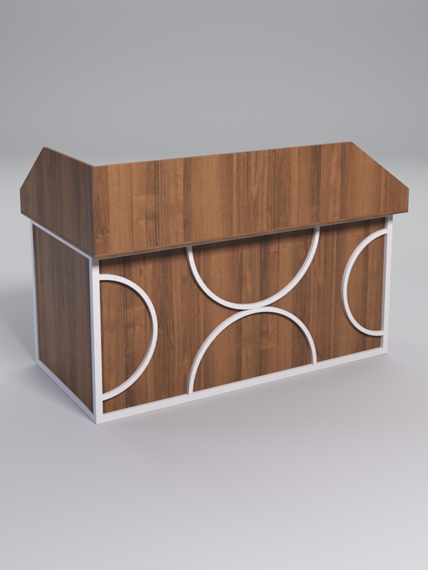 Мебель выполнена в стиле лофт. Фронтальная часть оснащена металлическими декоративными конструкциями, которые составляют оригинальный узор, который по внещнему виду напоминает четыре круга. Стиль лофт подходит для различных стилей интерьера и может быть использована как в коммерческих, так и в жилых помещениях.