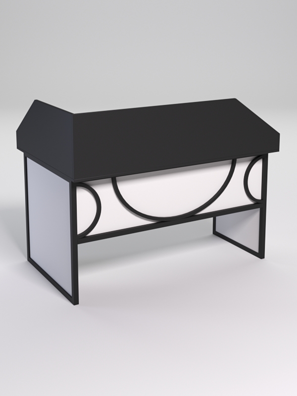 Мебель выполнена в стиле лофт. Фронтальная часть оснащена металлическими декоративными конструкциями, которые составляют оригинальный узор, напоминающий по внешнему виду три круга. Стиль лофт подходит для различных стилей интерьера и может быть использована как в коммерческих, так и в жилых помещениях.