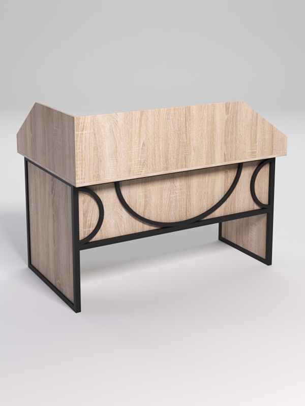 Мебель выполнена в стиле лофт. Фронтальная часть оснащена металлическими декоративными конструкциями, которые составляют оригинальный узор, напоминающий по внешнему виду три круга. Стиль лофт подходит для различных стилей интерьера и может быть использована как в коммерческих, так и в жилых помещениях.