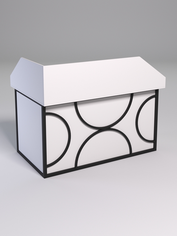 Мебель выполнена в стиле лофт. Фронтальная часть оснащена металлическими декоративными конструкциями, которые составляют оригинальный узор, напоминающий четыре круга. Стиль лофт подходит для различных стилей интерьера и может быть использована как в коммерческих, так и в жилых помещениях.