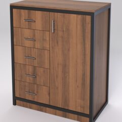 Тумба (1 дверь справа, 5 ящиков). Слева пять выдвижных ящиков, справа секция с дверью. Отлично подойдет как под офисную технику, так и для хранения документов.