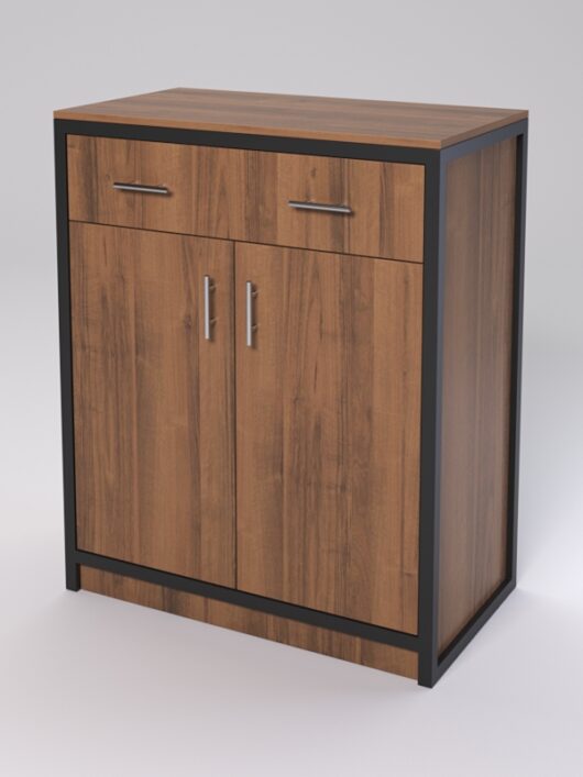 Тумба (2 выдвижных ящика и 2 секции с дверцами). Слева и справа по одному выдвижному ящику, и снизу под ними две секции с дверцами. Отлично подойдет как под офисную технику, так и для хранения документов.