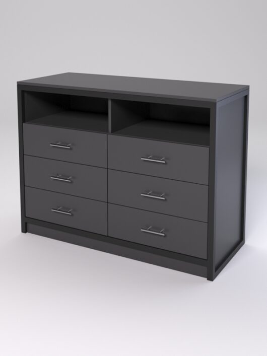 Тумба (2 открытые полки, 6 выдвижных ящиков). Тумба по типу комода отлично подойдет под габаритную офисную технику и для хранения документов.