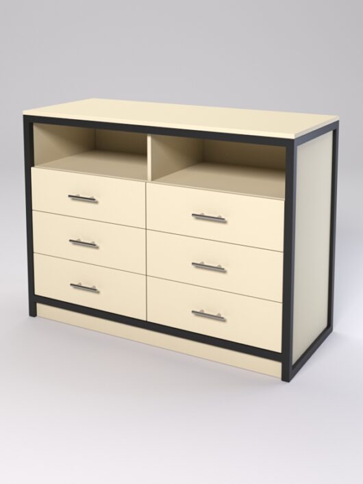 Тумба (2 открытые полки, 6 выдвижных ящиков). Тумба по типу комода отлично подойдет под габаритную офисную технику и для хранения документов.