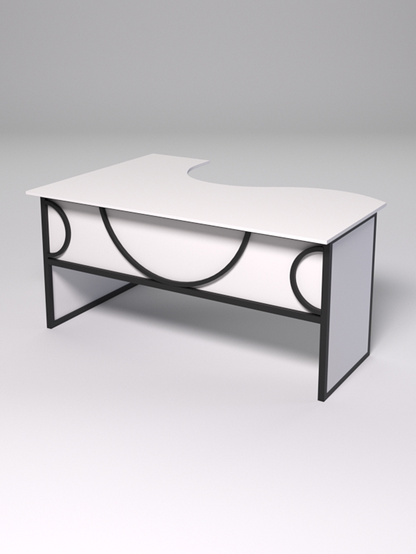 Стол состоит из 4х деталей, которые скрепляются между собой конфирматами и мебельными уголками. Столешница имеет фигурный вырез со стороны работника. Инструкция по сборке не требуется.