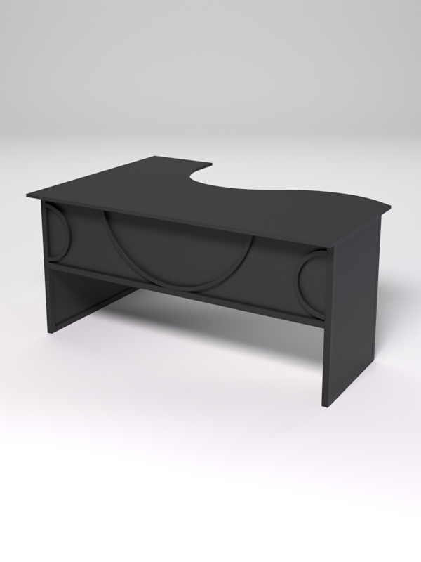 Стол состоит из 4х деталей, которые скрепляются между собой конфирматами и мебельными уголками. Столешница имеет фигурный вырез со стороны работника. Инструкция по сборке не требуется.