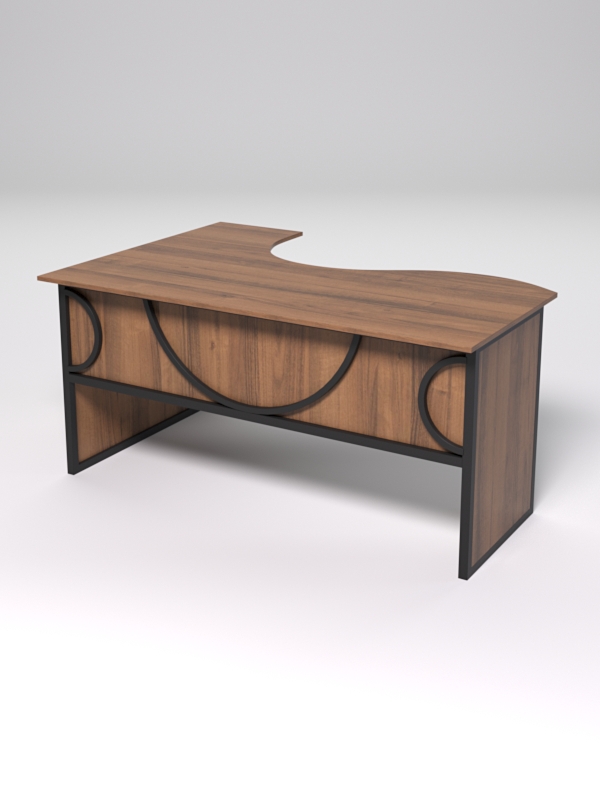 Стол эргономичный офисный СЭ-12 (правосторонний) "СТРОНГ" в стиле ЛОФТ декор №1, Орех