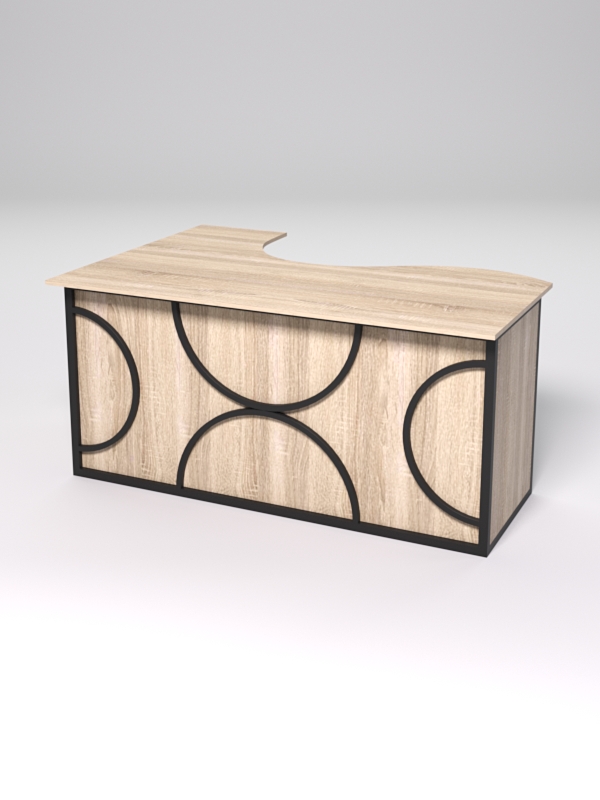 Стол состоит из 4х деталей, которые скрепляются между собой конфирматами и мебельными уголками. Столешница имеет фигурный вырез со стороны работника. Инструкция по сборке не требуется.