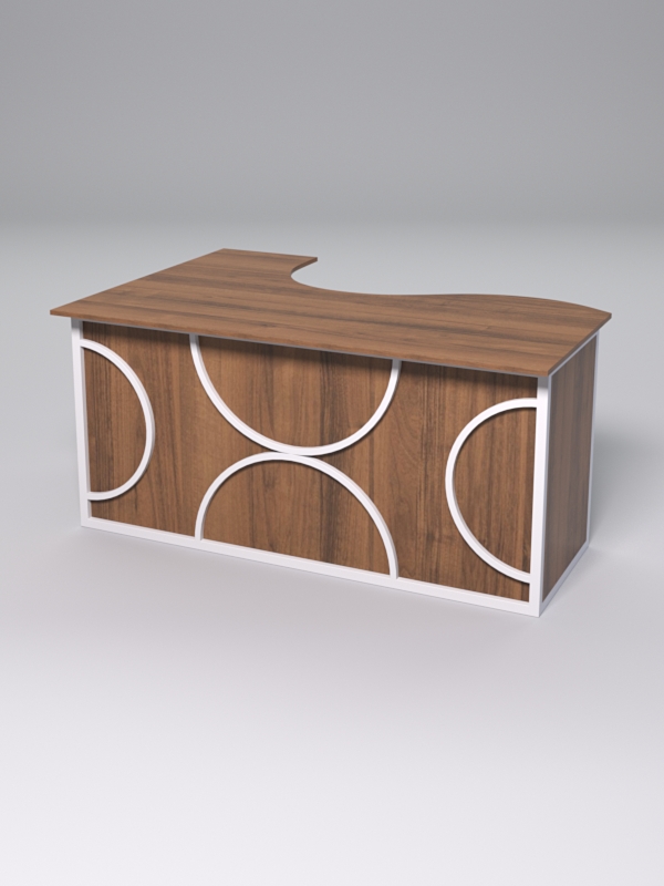 Стол состоит из 4х деталей, которые скрепляются между собой конфирматами и мебельными уголками. Столешница имеет фигурный вырез со стороны работника. Инструкция по сборке не требуется.