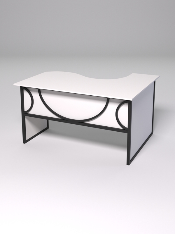 Стол состоит из 4х деталей, которые скрепляются между собой конфирматами и мебельными уголками. Столешница имеет фигурный вырез со стороны работника. Инструкция по сборке не требуется.