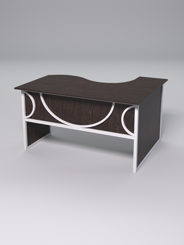Стол состоит из 4х деталей, которые скрепляются между собой конфирматами и мебельными уголками. Столешница имеет фигурный вырез со стороны работника. Инструкция по сборке не требуется.