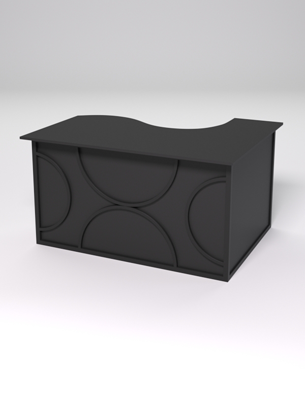 Стол состоит из 4х деталей, которые скрепляются между собой конфирматами и мебельными уголками. Столешница имеет фигурный вырез со стороны работника. Инструкция по сборке не требуется.