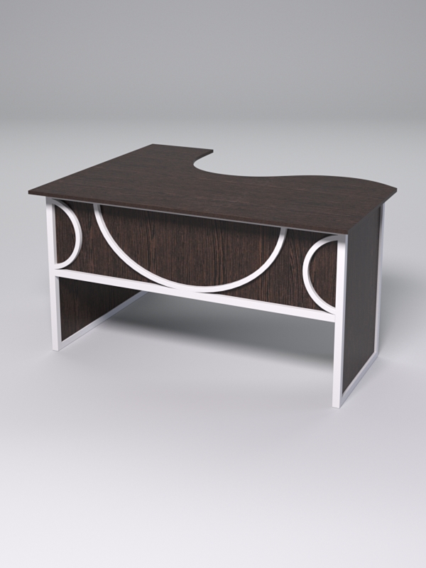 Стол состоит из 4х деталей, которые скрепляются между собой конфирматами и мебельными уголками. Столешница имеет фигурный вырез со стороны работника. Инструкция по сборке не требуется.
