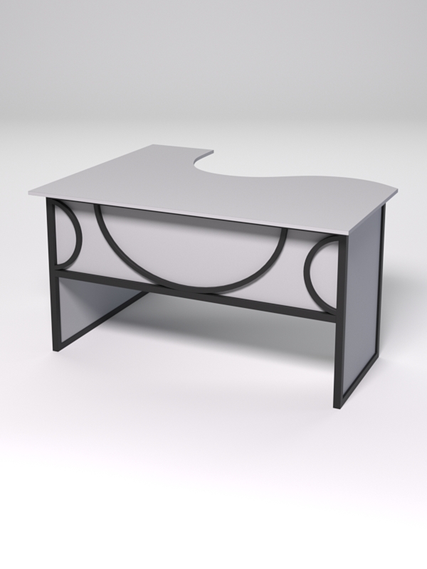 Стол состоит из 4х деталей, которые скрепляются между собой конфирматами и мебельными уголками. Столешница имеет фигурный вырез со стороны работника. Инструкция по сборке не требуется.
