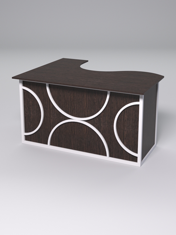 Стол состоит из 4х деталей, которые скрепляются между собой конфирматами и мебельными уголками. Столешница имеет фигурный вырез со стороны работника. Инструкция по сборке не требуется.