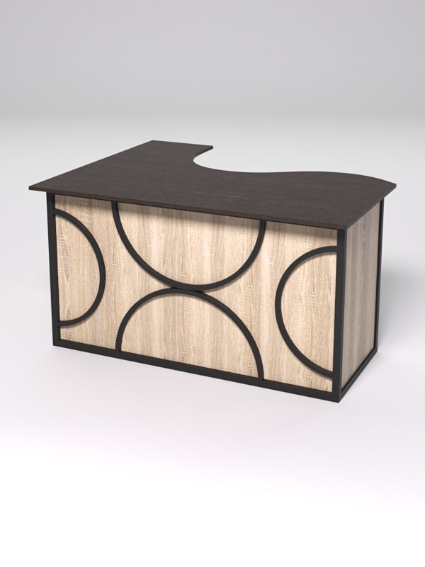 Стол состоит из 4х деталей, которые скрепляются между собой конфирматами и мебельными уголками. Столешница имеет фигурный вырез со стороны работника. Инструкция по сборке не требуется.