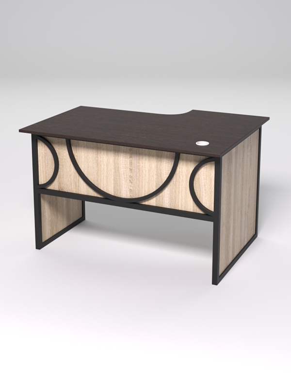 Стол состоит из 4х деталей, которые скрепляются между собой конфирматами и мебельными уголками. Столешница имеет фигурный вырез со стороны работника. Инструкция по сборке не требуется.