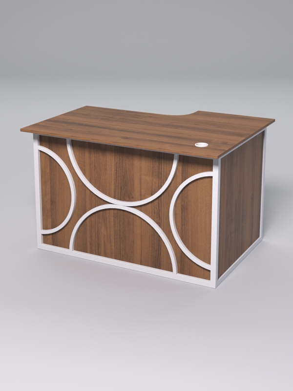 Стол состоит из 4х деталей, которые скрепляются между собой конфирматами и мебельными уголками. Столешница имеет фигурный вырез со стороны работника. Инструкция по сборке не требуется.
