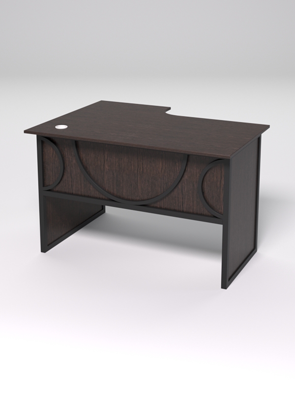 Стол состоит из 4х деталей, которые скрепляются между собой конфирматами и мебельными уголками. Столешница имеет фигурный вырез со стороны работника. Инструкция по сборке не требуется.