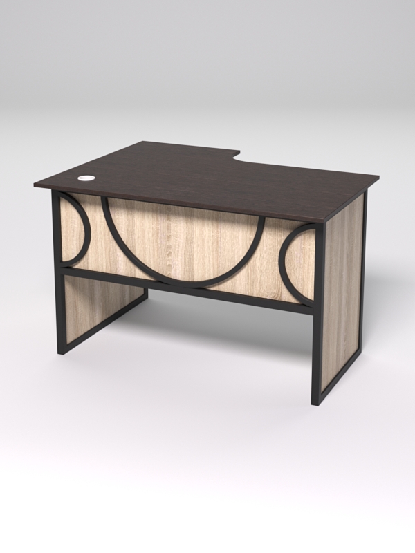 Стол состоит из 4х деталей, которые скрепляются между собой конфирматами и мебельными уголками. Столешница имеет фигурный вырез со стороны работника. Инструкция по сборке не требуется.