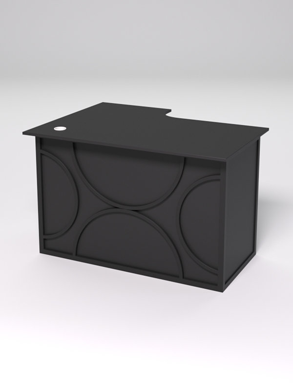 Стол состоит из 4х деталей, которые скрепляются между собой конфирматами и мебельными уголками. Столешница имеет фигурный вырез со стороны работника. Инструкция по сборке не требуется.