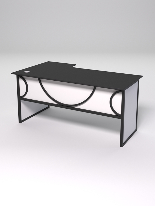 Стол состоит из 4х деталей, которые скрепляются между собой конфирматами и мебельными уголками. Столешница имеет фигурный вырез со стороны работника. Инструкция по сборке не требуется.
